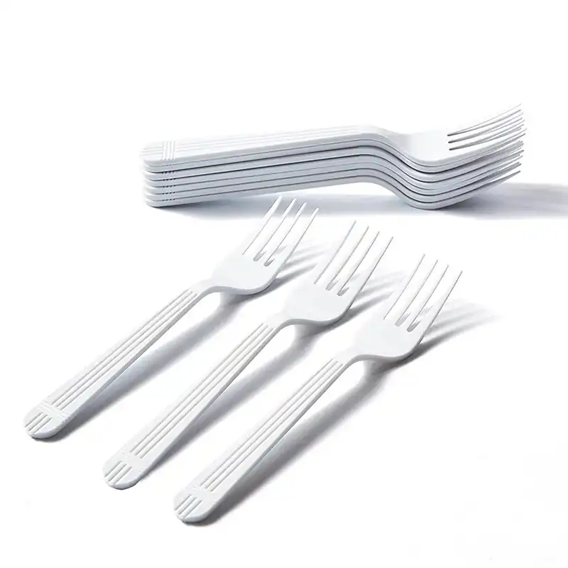 These Medium Weight White Polypropylene Plastic Forks provide reliable performance and excellent value, ideal for restaurants, catering, office break rooms, and outdoor events. Made from durable polypropylene plastic, these disposable forks measure approximately 5¾ inches and are designed for light-to-medium use without compromising strength.