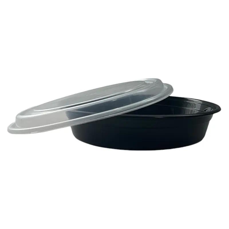 Perfect for mid-sized meal portions, this 23 oz. black round plastic disposable container with lid is designed to meet the demands of restaurants, delis, and disposable containers for meal prep. Made from durable, heavyweight plastic, it’s built to handle both hot and cold foods without bending or warping—making it a reliable choice for disposable microwave safe containers.