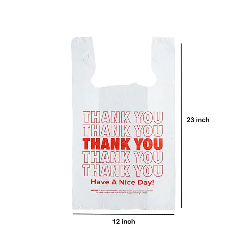 Durable and convenient, our range of Plastic T-Shirt Bags come in various sizes and strengths to suit any need — from extra small to heavy-duty. These Thank You Plastic Bags feature the familiar “Thank You” or “Thanks” print, making them a reliable choice for retail shops, restaurants, grocery stores, bakeries, and takeout services. Perfect as Plastic Grocery Bags or Disposable Shopping Bags, they combine function and affordability in one. Designed with easy-to-carry Plastic Bags with Handles, our economical packs (ranging from 400 to 1,500 bags per case) ensure you’re always stocked up and ready to serve your customers with confidence and ease.